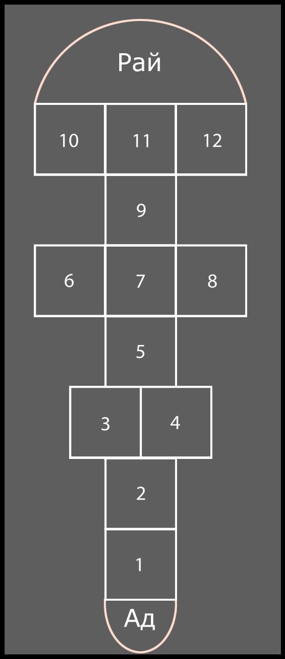 Сожалею сейчас, что не получается вспомнить игру с маленьким мячиком, там была своя считалка, где каждому слову соответствовал определенный рисунок траектории. Начиналось с пары простых бросков о стенку, мяч тут же ловился, в незамедляющемся ритме отправлялся вспять к стене, следующая пара движений — уже из под колена, в следующие надо было успеть обернуться через спину навстречу… и дальше — сложные пространственные узлы и фигуры сопряжений по одной схеме — контакт с препятствием — посыл — контакт с препятствием — усложнённый посыл — контакт… Схема бытия. Развивающегося бытия. Наверняка и сами повороты и коленца имеют иной смысл, кроме обывательской физзарядки. Слов-заклинаний не помню, но звучало это — весьма приблизительно, хоть и похоже — так: Аки! — удар мячом, Буки! — удар, Веники! Беники! Напоминает алфавитный порядок.