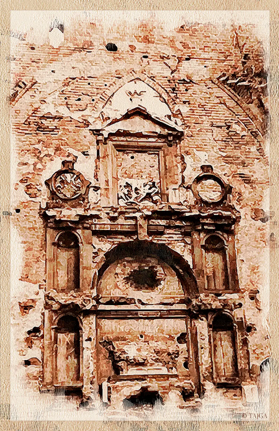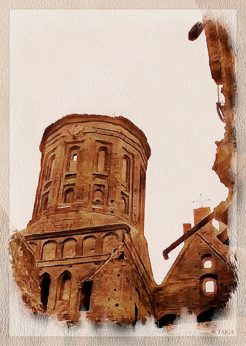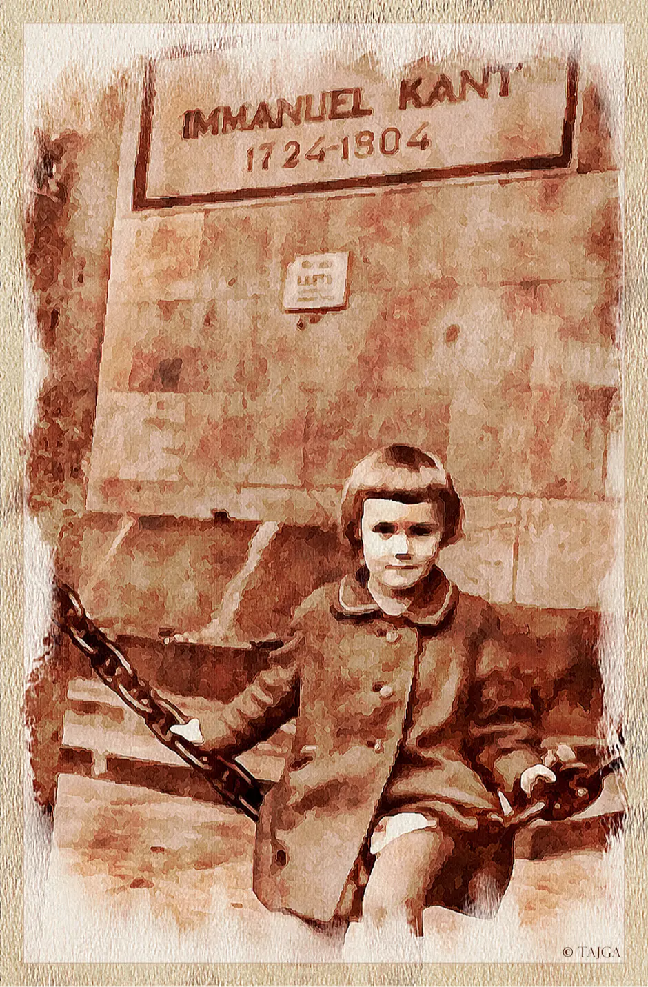 ...В центре Калининграда послевоенные развалины, они ещё долго будут зиять, несмотря на осваивающихся на иной земле россиян. Даже я, двадцать лет спустя, ещё застану страшные увечные дома, и один мне запомнится обнажённой драмой: единственная стена, на высоте второго этажа – унитаз из немецкого фаянса, ветер качает маятником вдоль кирпичей слепую цепь, а под ним надпись "Дойдем до Берлина!"