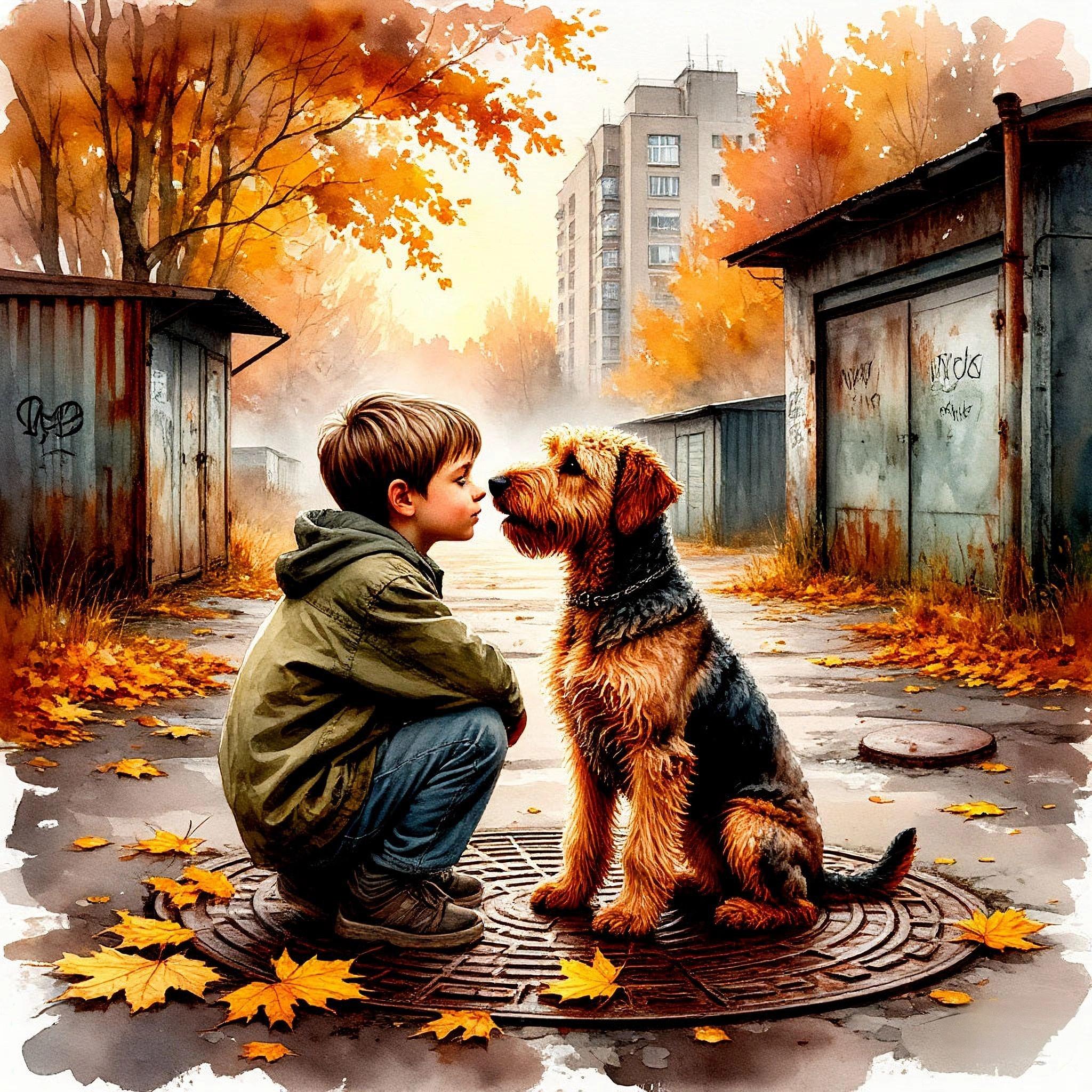 Мальчик протиснулся между баками в угол, придвинул к собачьей морде котлету. Пес лизнул руку мальчика и деликатно полизал вкусный мясной комок.